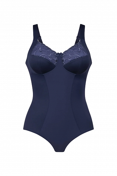 Спереди грация усилена специальной вставкой на подкладке, что позволяет корректировать зону живота и талии. Вертикальные линии кроя визуально сужают силуэт.